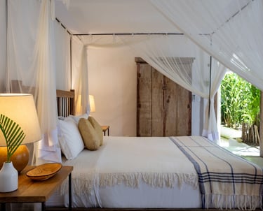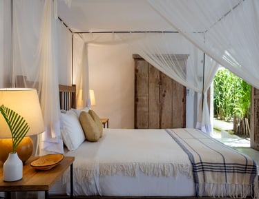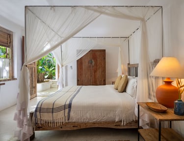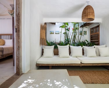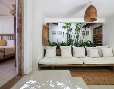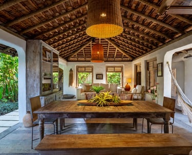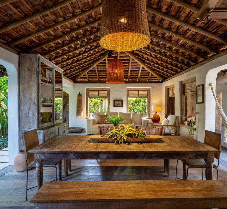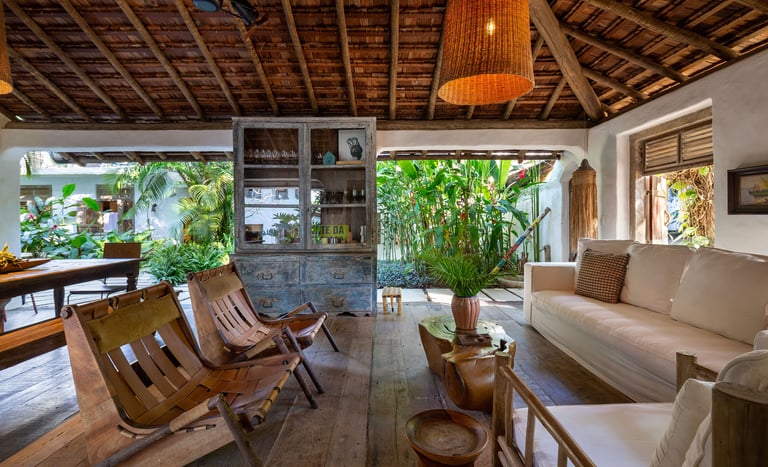 Com charme singular e espaços acolhedores, a Casa Império é composta por quatro suítes pensadas para o descanso a dois. A propriedade destaca-se pela Suíte principal com varanda exclusiva, além de opções térreas renovadas para maior bem-estar, sendo indicada para hóspedes que valorizam o silêncio e a sofisticação de Trancoso.