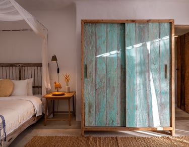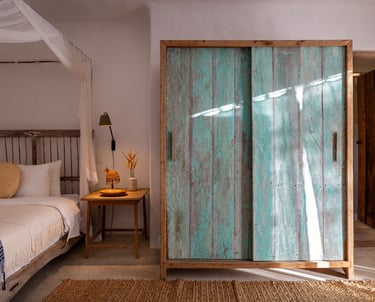 Acomodação repleta de personalidade, marcada por um armário de época e decoração em tons terrosos, oferecendo acesso direto à área externa.