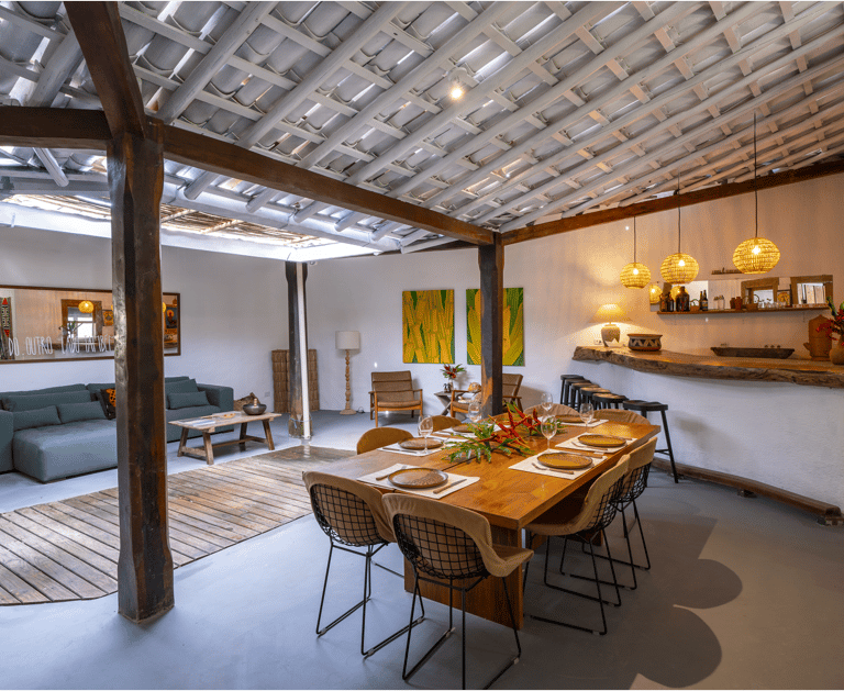 Um tesouro da arquitetura local: a Casa Sebastiana encanta com sua fachada azul e espaços que respiram a história de Trancoso. Com três suítes restauradas e integradas ao serviço de luxo da Vila Santo Rei, esta propriedade convida a dias de imersão cultural no Quadrado com total privacidade e requinte.