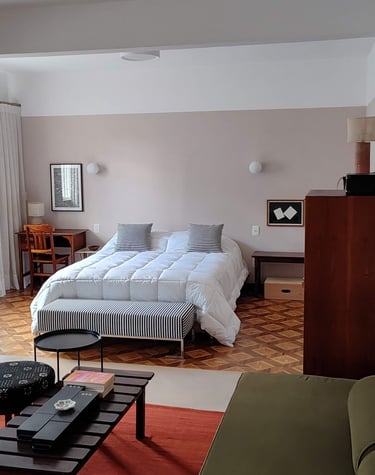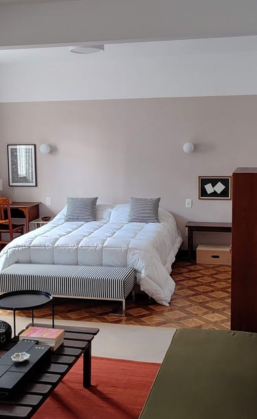 Santo Rei une luxo, arte e criatividade no coração de São Paulo. Suítes elegantes, espaços culturais e um estúdio de podcast integrado oferecem uma experiência única, conectando você à efervescência cultural da cidade com conforto e sofisticação.